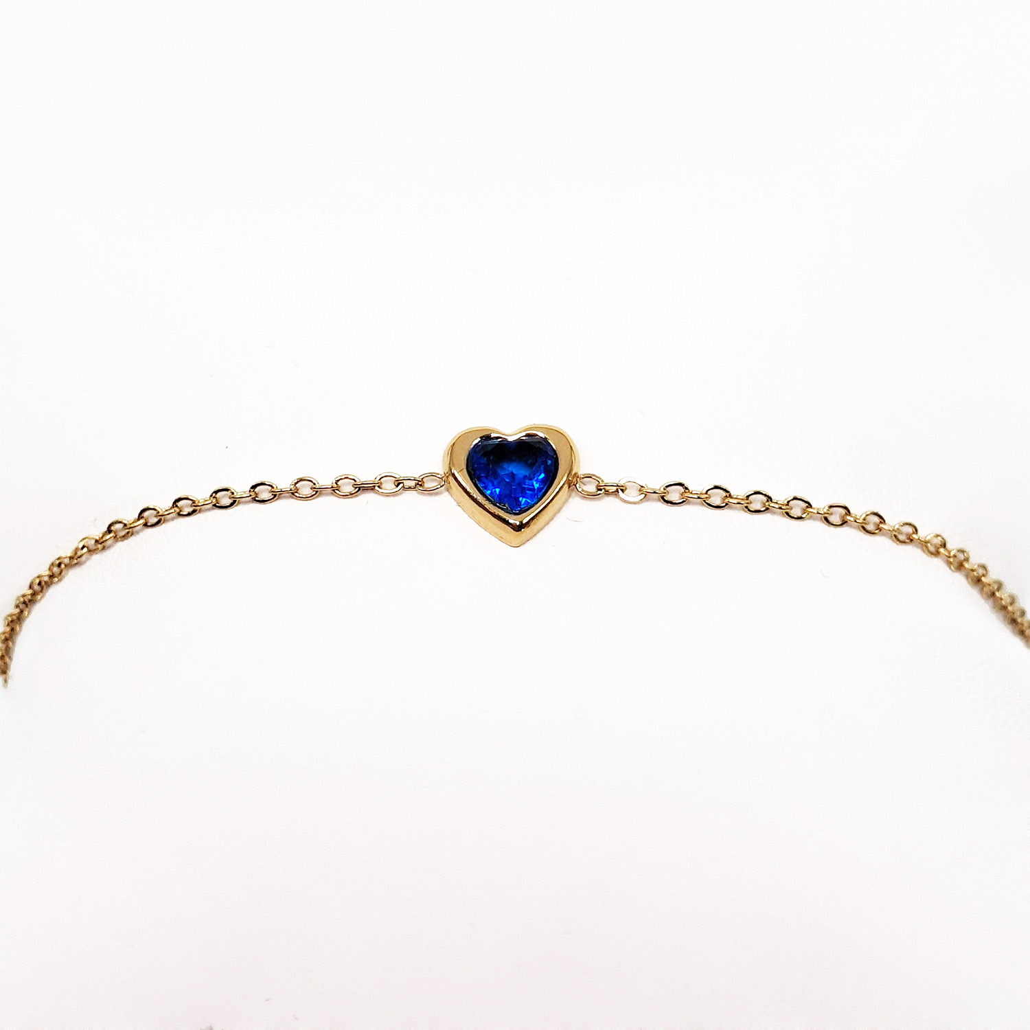 Βραχιόλι με λεπτή επιχρυσωμένη ατσάλινη αλυσίδα-μπλε καρδιά