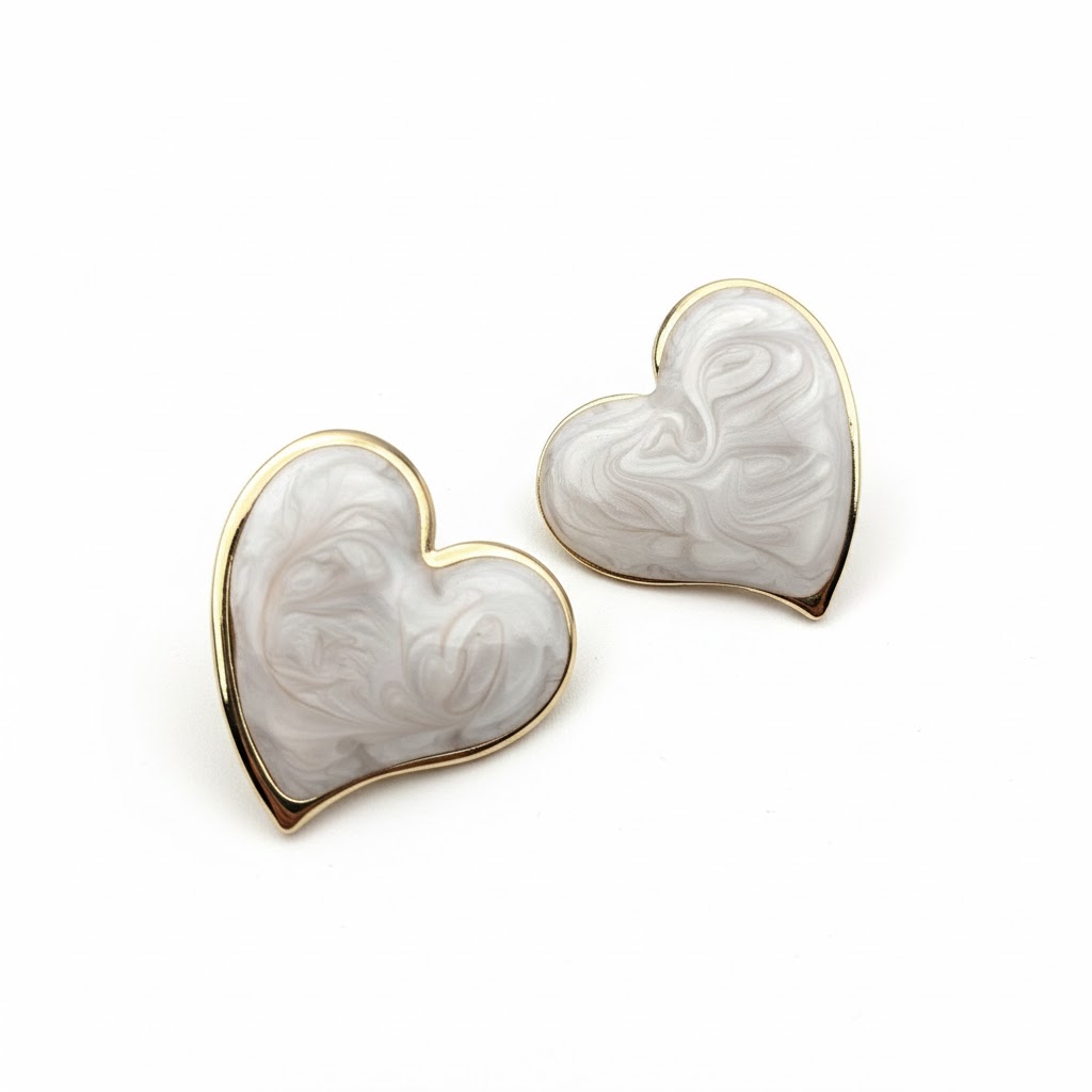 σκουλαρίκια καρδιά σε λευκό marble glow round